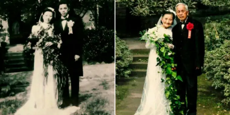 At the end of the ceremony, Cao reportedly turned to Wang and vowed to return to the same spot for photos and again when they both turn 100.