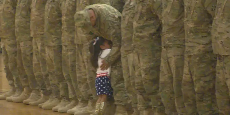 The three-year-old hadn’t seen her father in eight months because of his deployment.