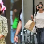 One of the 4-year-old twins wore an adorable colorful print sundress with a stylish green headband as she held hands with her famous mother.